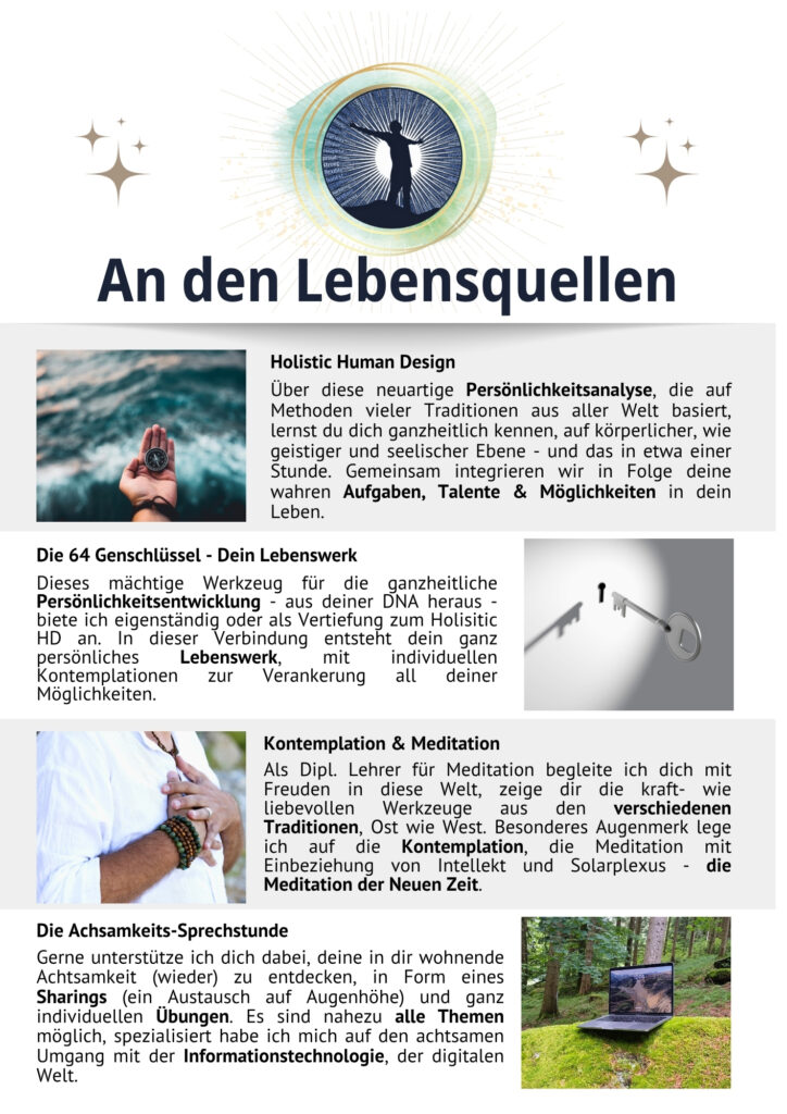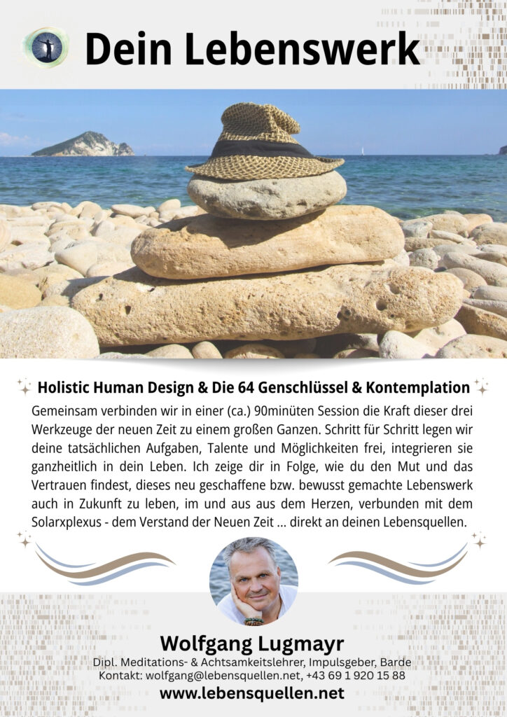 Dein Lebenswerk (Das Holistisches Human Design – Die 64 Genschlüssel) – Kontemplation & Meditation – Herzenszeremonien – Sprechstunden – Vorträge, Seminare und Retreats